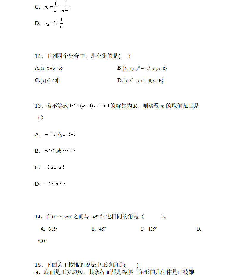 以上就是“辽宁经济职业技术学院单招数学样题”的全部内容,更多关于辽宁高职单招的相关内容,如辽宁高职单招网报名时间、报考条件、报名流程、考试科目、辽宁高职单招成绩查询、分数线等敬请关注辽宁高职单招网。